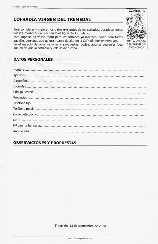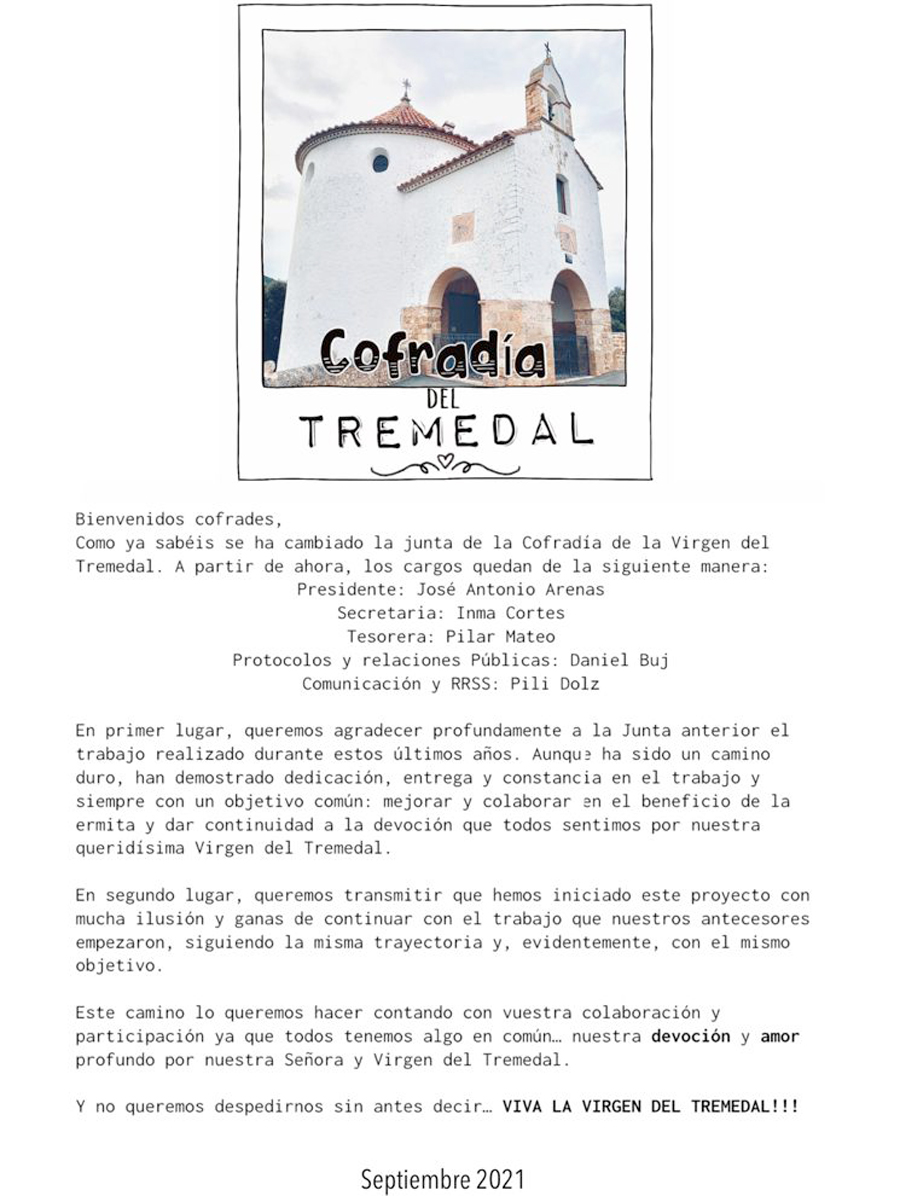 NOTA DE LA COFRADÍA DEL TREMEDAL