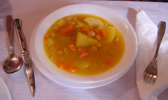 Exquisita sopa de caldo con verduras y garbanzos